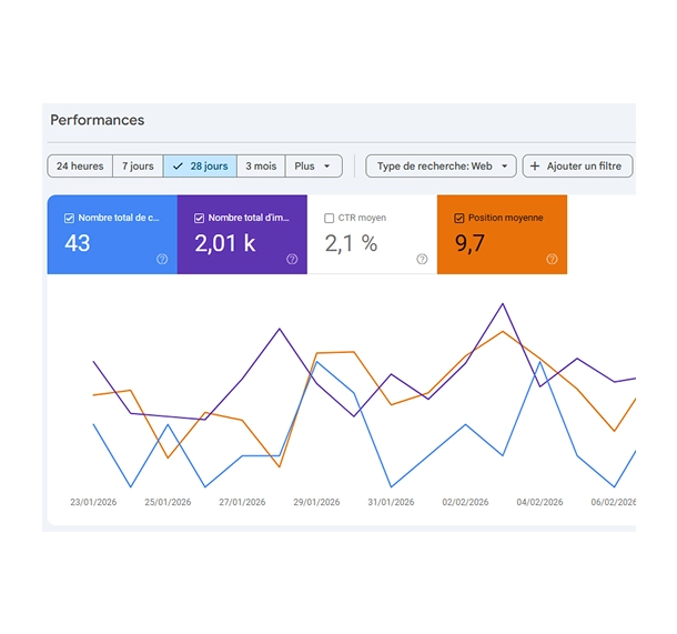 Afin que le client puisse suivre ses résultats, j’ai connecté et configuré différents outils de tracking